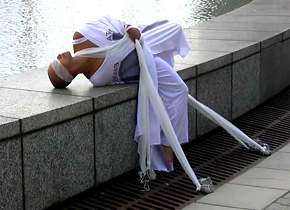 Als packendes Highlight für die Zeremonie gestaltete Kazuko Kurosaki ihren Tanz auf dem großen Plazza und im Teich vor den beiden UNO-Türmen. Ein internationales Publikum und viele lokale Gäste folgten der eindrucksvollen und packenden Performance.