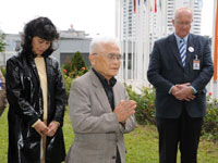 UN-Peacebell eine Schweigeminute mit Hibakusha Herrn Soda aus Nagasaki abgehalten. |